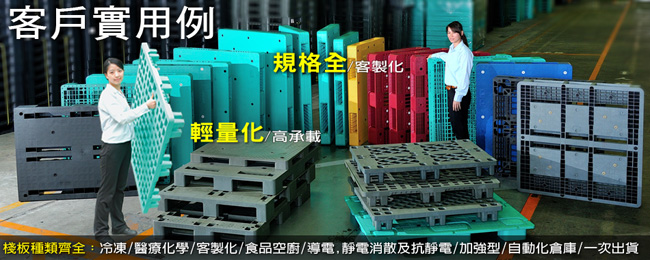 防潮衛生:塑膠棧板具防潮性、不會滋生細菌或黴菌、防白蟻,衛生性佳等優點,而上述優點是木棧板所沒有的。